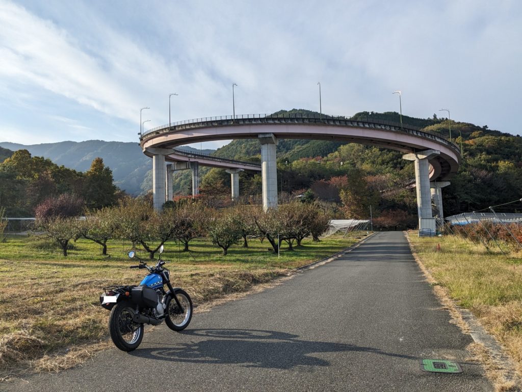 甲斐駒ヶ岳広域農道を釜無川に沿って南下し、甲府盆地の西縁を南北に走るウエスタンラインへ。その途中に桃花橋というループ橋があるので寄り道おじさん。