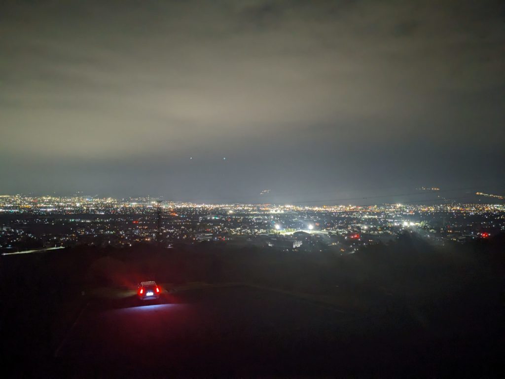 古墳の上(今調べて知った)でちょこっと夜景を眺めて、20時に帰途へ。